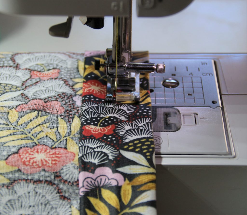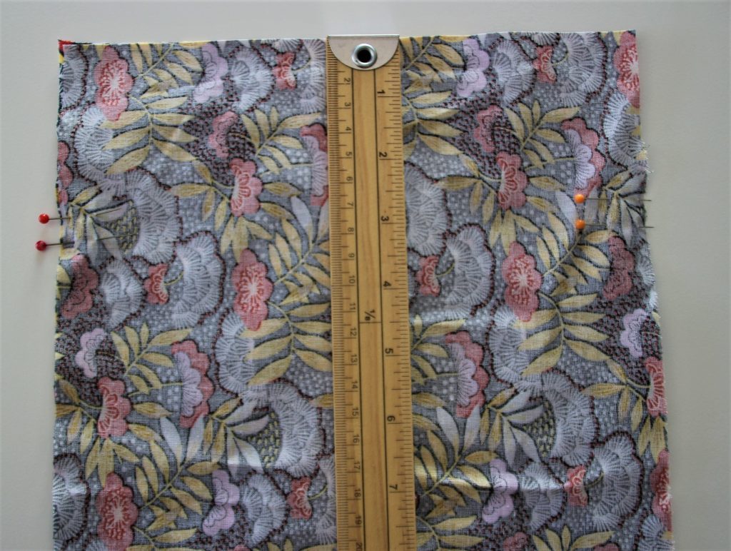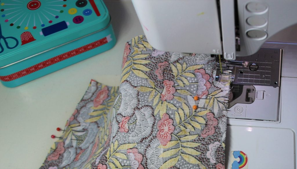Je plie en deux dans la hauteur (endroit contre endroit) et je pique chaque côté en laissant une ouverture de 1 cm à 7 cm du bord supérieur.