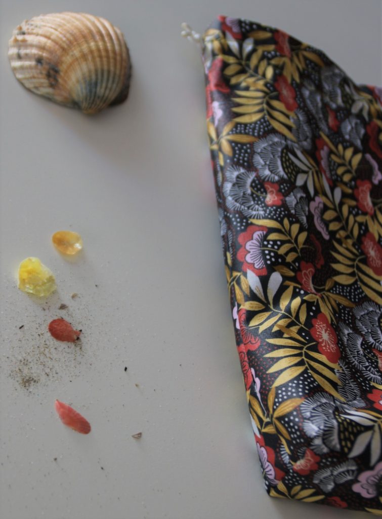 Aujourd’hui avec Elsa de Six Stars, une super créatrice de ma région, on vous propose de réaliser votre pochon en tissu enduit. C’est généralement un tissu en coton ou en lin classique recouvert sur l’endroit avec un revêtement de polyuréthane. Ce traitement lui donne des propriétés déperlantes qui le rendent facile à nettoyer et quasi imperméable. Cela permet de transporter ses crèmes sans trop s’inquiéter. Pratique et réutilisable, c’est un élément zéro déchet. Vous pouvez bien-sûr un autre textile ou utiliser de vieux draps ou bouts de tissus. Pour transporter vos courses en vrac, légumes, fruits, fruits secs, vous pouvez faire différentes tailles de sacs. Choisissez dans ce cas là des tissus bio.