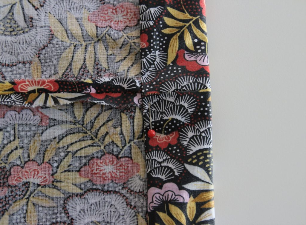 Ensuite, je replie le bord supérieur sur l’envers sur 1,5 cm et une seconde fois sur 3,5cm.